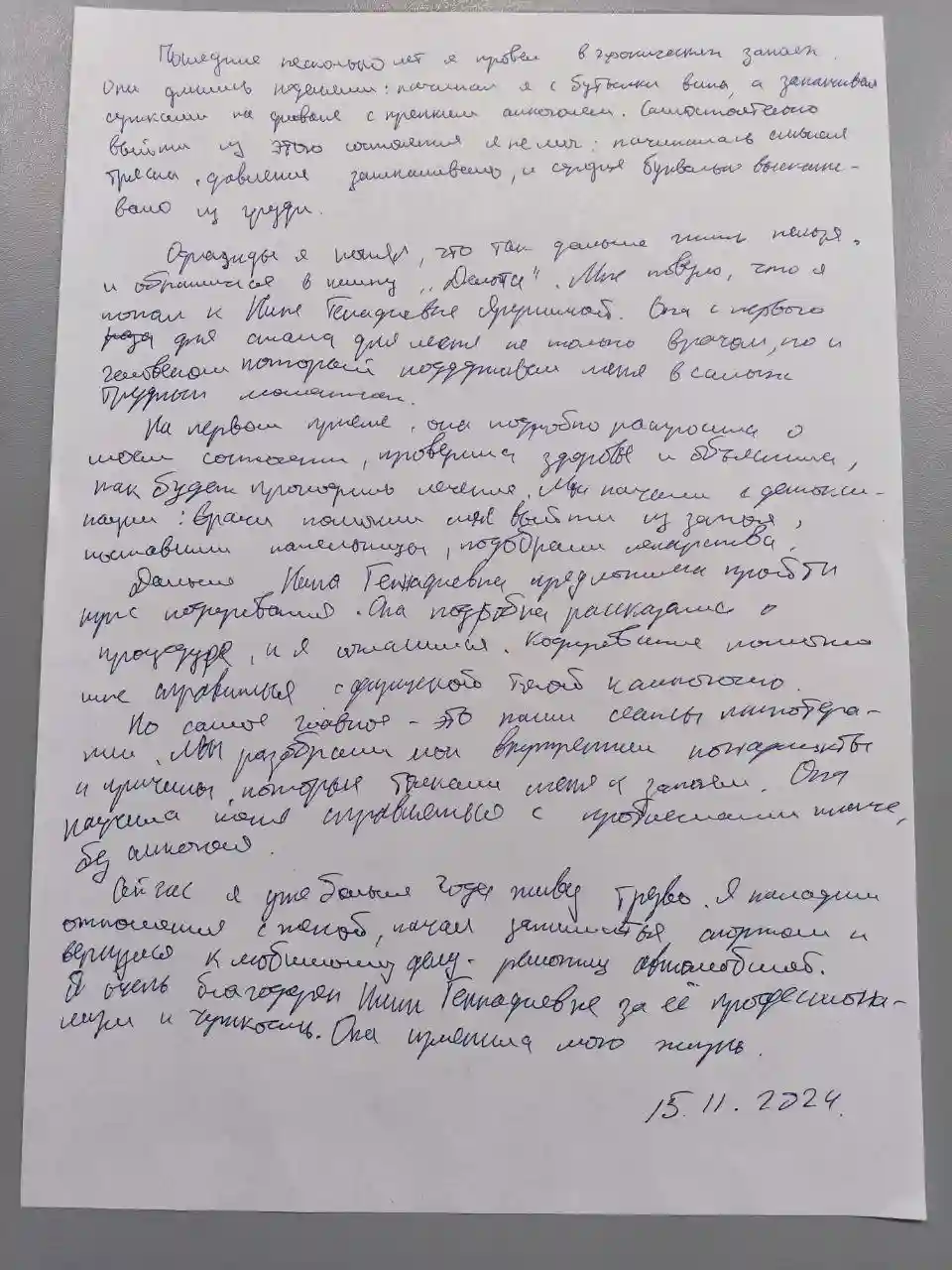 Мы понимаем, что алкогольная зависимость может разрушить здоровье, карьеру и отношения в семье, поэтому предлагаем доступное и эффективное лечение, позволяющее человеку быстро встать на путь трезвости. Если вам или вашим близким нужна помощь, не откладывайте решение проблемы. В нашей наркологии «Дельта» в Сосенском можно пройти кодирование препаратом Тетлонг недорого и с гарантией безопасности. Обращайтесь к нам в любое время суток – мы работаем круглосуточно и готовы помочь каждому, кто хочет изменить свою жизнь.